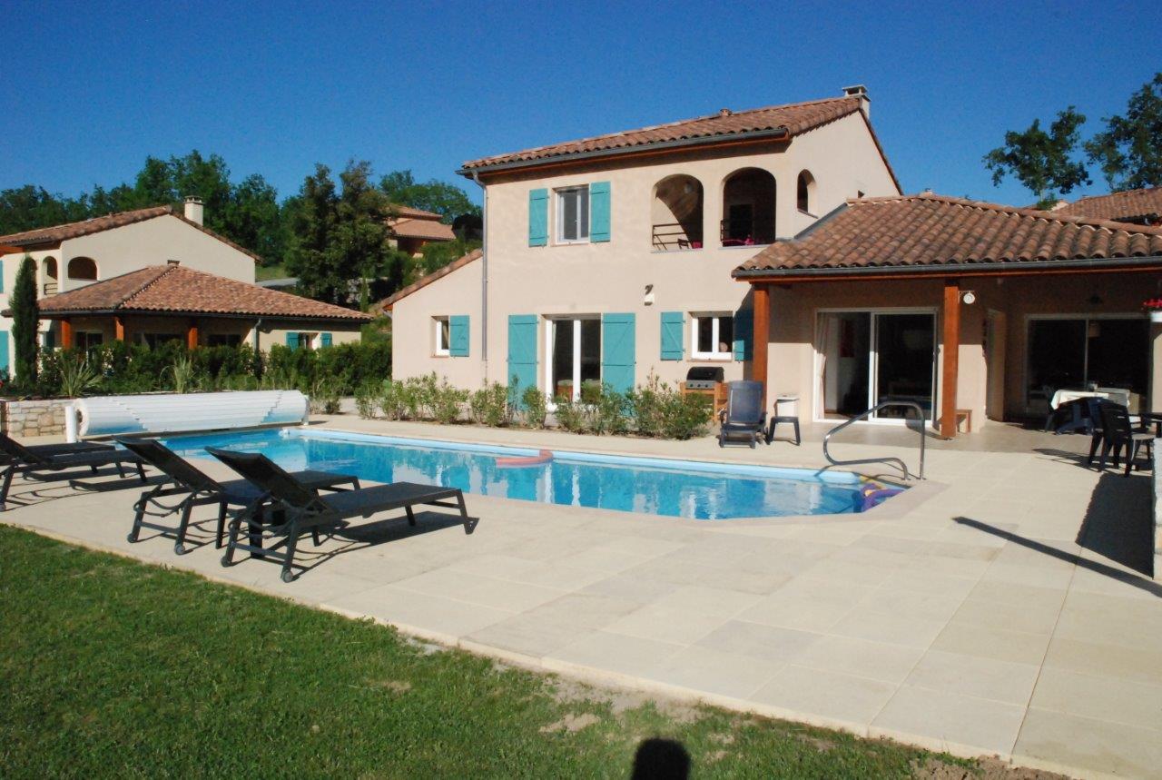 Zeer luxe, comfortabele vrijstaande royale 2-8 persoons villa "Rives de l'Ardèche" met groot verwarmd privé zwembad van 11 meter, grote tuin met vrij en ver uitzicht op de vallei en de bergen, XL overdekt terras, airco in 3 van de 4 slaapkamers, gelegen aan de buitenrand op het 4 sterren Villapark Domaine "Les Rives de l'Ardèche", adres: Rue Louis Pasteur 321, 07150 - Vallon Pont d'Arc.